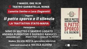 Un evento imperdibile sulla Trattativa Stato-mafia, il 7 marzo alle 18.30, Teatro Garbatella di Roma (Piazza Giovanni da Triora, 15). Ingresso libero (gratuito e senza prenotazione, fino a esaurimento posti).