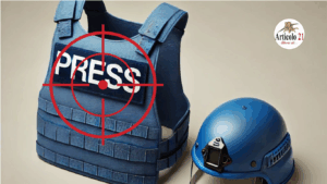 In piazza con bocche incerottate e mirini sulla scritta PRESS. Sono 226 gli operatori della comunicazione uccisi a Gaza, 4 in Israele, undici quelli tra Libano e Siria.