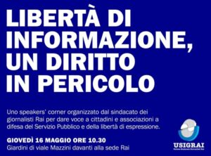 Uno speakers’ corner nei Giardini di viale Mazzini organizzato dall’UsigRai per giovedì 16 maggio dalle 10.30 è il modo con cui l’UsigRai torna e insiste sulla necessità di tenere i riflettori accesi su ciò che sta succedendo alla più grande azienda culturale del paese. Ma anche un modo per dare voce a cittadini, associazioni, giornalisti sullo stato di salute complessivo della libertà di espressione in Italia.
