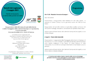 Il 3 maggio è la Giornata Mondiale della Libertà di Stampa, una ricorrenza molto importante per l’associazione culturale Leali delle Notizie di Ronchi dei Legionari che da anni organizza numerose iniziative per contrastare la censura dell’informazione e le minacce che ogni anno centinaia e centinaia di giornalisti sono costretti a subire perché svolgono il proprio mestiere raccontando le verità più scomode.