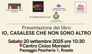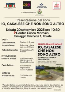 L’ANPI Rosate, in collaborazione con Libera, la Biblioteca Comunale “don Luigi Negri”, il Comune di Rosate e Avviso Pubblico, invita tutta la cittadinanza alla presentazione del libro di Renato Franco Natale “Io, casalese che non sono altro – Storia di resistenza e di riscatto” (Rubbettino Editore, 2
