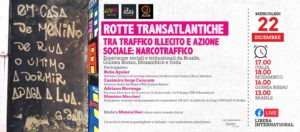 Questo primo incontro avrà come tema centra il narcotraffico con testimonianze da Brasile, Guinea Bissau, Mozambico e Italia.