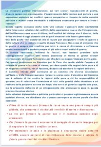 «… Ci sembra necessario ” metterci la faccia”, non lasciarci prendere dallo scoraggiamento rispetto alla nostra piccolezza di fronte ai grandi scenari internazionali, stimolare l’attenzione per chiedere un maggior impegno per la pace…»