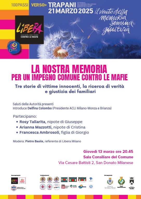 Il Circolo Acli Sud Est Milano e il coordinamento di Libera Milano invitano i cittadini, le associazioni e le istituzioni ad un importante appuntamento, per fare memoria e trasformare l’emozione in azione.