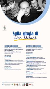 L’altro appuntamento è fissata per martedì 19 dicembre sempre alle ore 17,30 e sempre presso la Pieve di San Giovanni Battista con un evento dal titolo “Le comunità educanti e la scuola di don Lorenzo Milani”. L’incontro è suddiviso in due parti: nella prima parte sarà presentato il libro “Don Milani, vita di un profeta disubbidiente” scritto da Mario Lancisi, con la presenza dell’autore e i saluti del Sindaco di San Giovanni Valdarno Valentina Vadi e del Vescovo di Fiesole Monsignor Stefano Manetti.