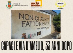 Il Comune di Settimo Torinese (To) il prossimo 21 marzo alle 18 proporrà un incontro dal titolo: «Capaci e via D’Amelio, 33 anni dopo. L’impegno civile e la lotta alle mafie»