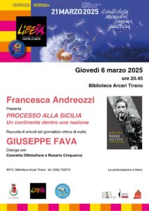 Giovedì 6 marzo alle ore 20.45, la Biblioteca Arcari di Tirano (SO) ospiterà un incontro promosso con il presidio di Libera “Piero Carpita e Luigi Recalcati” di Morbegno (SO) e l’Istituto di Istruzione Superiore “B. Pinchetti”.