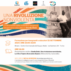 A cent’anni dalla sua nascita, Gruppo Abele Onlus, Libera Piemonte, ACMOS e il Centro per lo sviluppo creativo Danilo Dolci hanno organizzato una giornata di formazione, rivolta a educatorɜ e insegnanti, sabato 21 settembre presso Binaria – centro commensale, con la partecipazione di Amico Dolci e Giuseppe Barone.