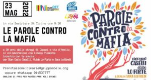 Le parole contro la mafia è un evento gratuito, in collaborazione con Libera Piemonte, con prenotazione obbligatoria scrivendo a binaria@gruppoabele.org oppure su whatsapp.
