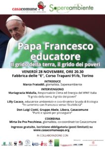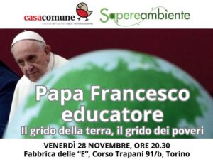 Torino 28 novembre: “Papa Francesco Educatore. Il grido della terra, il grido dei poveri”