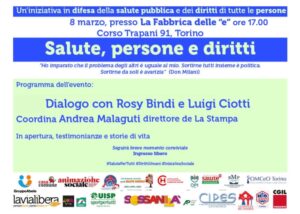 L’8 marzo alle 17 alla Fabbrica delle “e”, sede del Gruppo Abele in corso Trapani 91/b a Torino, un incontro aperto al pubblico sui temi della salute, della sanità e della tutela di queste come diritti di tutte e tutti.
