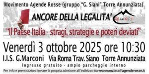 Il Movimento Agende Rosse – gruppo “G. Siani” di Torre Annunziata (NA) – annuncia un nuovo importante evento del ciclo Ancore della Legalità, che si terrà venerdì 3 ottobre 2025 alle ore 10:30 presso l’I.I.S. G. Marconi (Via Roma, Trav. Siano, Torre Annunziata).