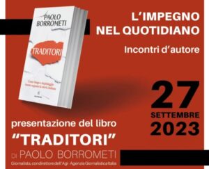 Un’iniziativa che prenderà avvio alle 18 e avrà ad oggetto la presentazione del nuovo libro Traditori del giornalista e scrittore Paolo Borrometi, condirettore Agi, presidente di Articolo21 e che sul suo sito indipendente La Spia.it denuncia ormai da anni gli intrecci tra mafia e politica e gli affari sporchi che fioriscono all’ombra di quelli legali.