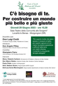 Giovedì 29 giugno 2023 alle ore 10,30 appuntamento nella Sala-Teatro della Comunità Alle Sorgenti, Località Is Benas, in Comune di Morgongiori.