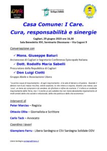 Mons. Giuseppe Baturi, Arcivescovo di Cagliari e Segretario Conferenza Episcopale Italiana, Dott. Rodolfo Maria Sabelli, Procuratore della Repubblica di Cagliari e Don Luigi Ciotti, fondatore Gruppo Abele e Associazione Libera, converseranno sulla Casa Comune da curare e tutelare con responsabilità individuale e collettiva, creando occasioni e sinergie di contrasto ad ogni tentativo di aggressione.