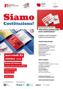 Mercoledì 23 ottobre nel Salone Di Vittorio della Camera del Lavoro si svolgerà un incontro rivolto alle scuole per presentare la nuova edizione del libro “Una lettura guidata della Carta costituzionale” e contribuire a una comprensione più profonda della nostra Costituzione da parte di studentesse e studenti.