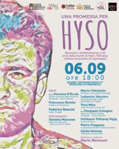 A venticinque anni da quel terribile episodio, la Diocesi di Cerignola-Ascoli Satriano, la Caritas Diocesana e la Cooperativa Sociale “Pietra di Scarto”, in collaborazione con il Coordinamento Provinciale di “Libera contro le mafie”, organizzano un momento aperto alla cittadinanza dal titolo “Una promessa per Hyso. Racconti e testimonianze a venticinque anni dalla morte di Hyso Telharaj, vittima innocente di caporalato”.