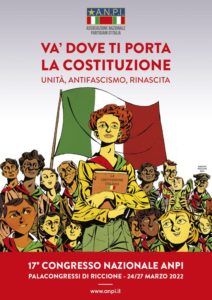 Nei giorni 24/27 marzo 2022 al Palacongressi di Riccione, l’ANPI svolgerà il suo 17° Congresso nazionale: “Va’ dove ti porta la Costituzione – unità, antifascismo, rinascita”.
