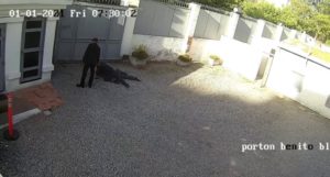 Alle 7.33 si apre il cancello. Luca è sempre a terra, sembra non muoversi.