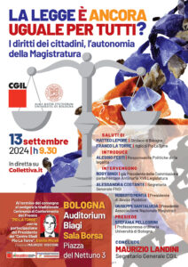 La cerimonia dell’ottava edizione del riconoscimento si terrà Venerdì 13 settembre 2024 alle ore 9.30, presso l’Auditorium Biagi – Sala Borsa, in Piazza del Nettuno 3 a Bologna, all’interno del convegno “La legge è ancora uguale per tutti? I diritti dei cittadini, l’autonomia della Magistratura”, promosso nell’ambito della Summer School dell’Università di Bologna