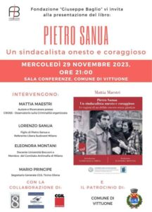 Intervengono l’autore del libro Mattia Maestri, Lorenzo Sanua, figlio di Pietro, Eleonora Montani, docente dell’Università Bocconi e presidente della Fondazione “Giuseppe Baglio” e Mario Principe, segretario generale della Cgil Ticino – Olona.